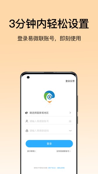 1、点击下载安装易微联摄像头app,立即登录后开始使用