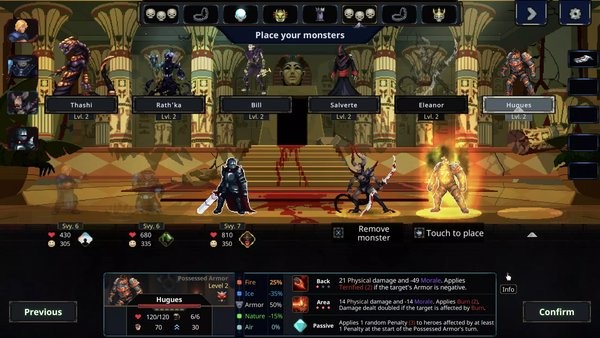 1、士气的伤害在整个游戏中非常有效,怪物及其升级的价格很便宜,您可以很容易地开始采用这种策略。此外,由于您的主人面对一些英雄,您仍然可以从出血效果中获得相对较好的飞行里程。