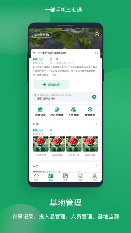 1.用户在线上就可以管理基地,平台上显示基地的全部数据信息,方便用户管理。