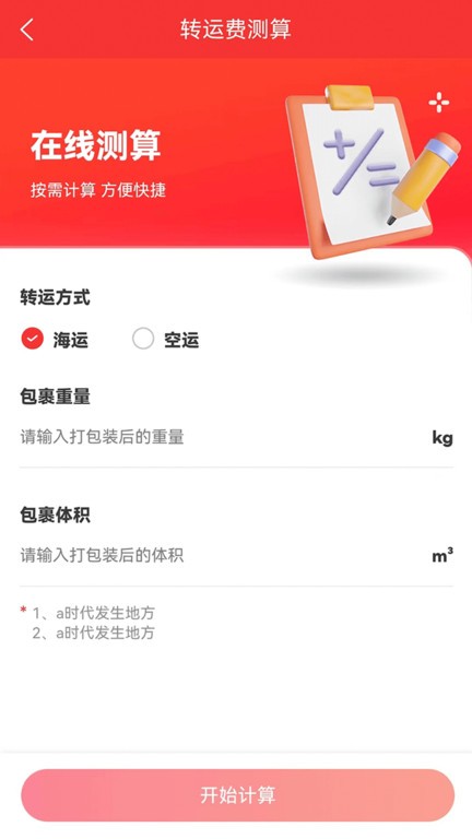 为家生活app最新版提供了全面的物流管理服务,海运空运全面支持,能够在是手机上输入单号来查询物流进度,未登记、已登记一目了然,可以在线计算转运费,填写好相对应的转运方式、包裹体积、重量以后就能进行测算了。