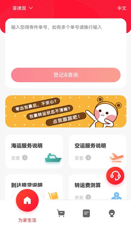在为家生活App,不论是包裹的转运过程、还是包裹转运费、以及当地配送服务,我们全程透明,信息详尽,一切以您的满意为平台宗旨。