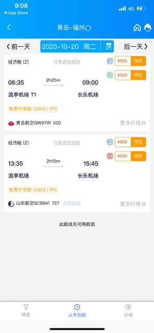 -- 打开软件选择机票预订,查看平台提供的所有航班,挑选合适的航班预订