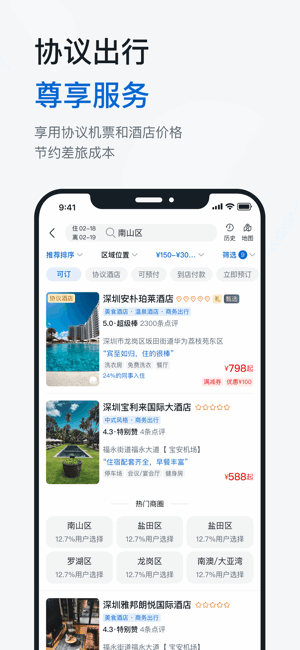 享用协议机票和酒店价格,节约差旅成本