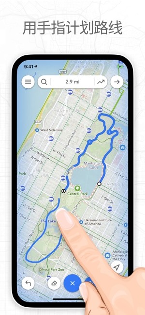通过用手指或Apple Pencil跟踪地图来快速测量距离。 呋特排图将与地图上的道路和小径对齐。