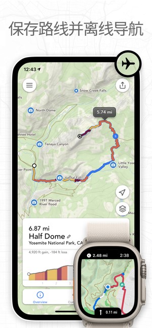 用手指计划路线,呋特排图将与道路和小径对齐。测量距离和高度,然后与语音指导一起导航。