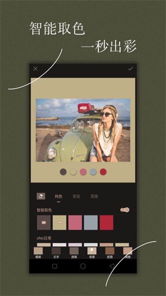 chic修图app是款超棒的修图软件。完美的帮助你快速的修图操作,经典的各种百搭背景选择,多种滤镜挑选,非常好用,等你使用!