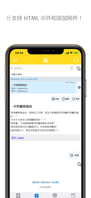您可将获得的邮箱地址作为发件人发送邮件。 也可添加附件。