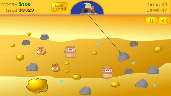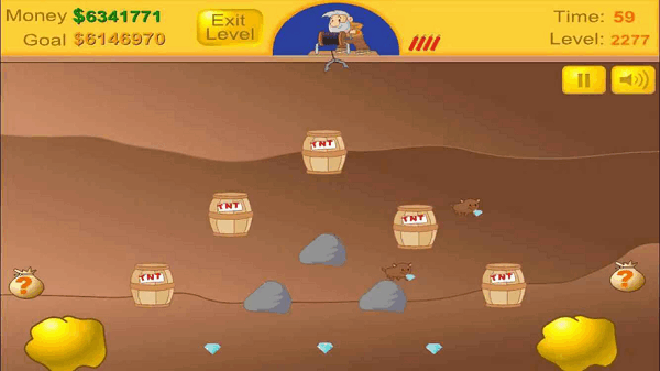 这款游戏玩法多样,既有单人模式又有对战模式,还能挑战极限任务,玩起来根本停不下来。游戏里有丰富的道具系统,比如炸药桶、小猪、钻石收藏书等,能帮助你更好地挖矿赚钱。但要注意避开爆炸物和石头这些障碍,有时候还得靠运气才能拿到更多金子。