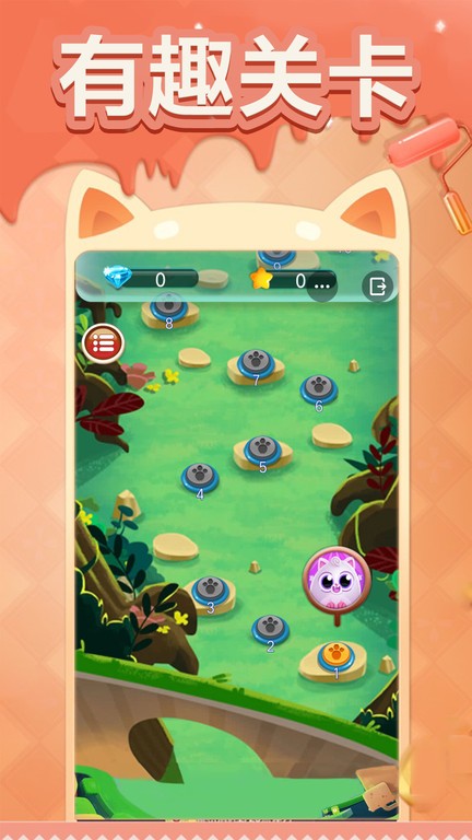 关卡设计得很棒,由浅入深,刚开始玩的时候感觉还挺简单的,但后面越来越难,需要动脑筋才能过关。最让我喜欢的是,每次救出小猫的感觉超有成就感!而且游戏还有排行榜,可以和朋友比高分,挺有动力的。