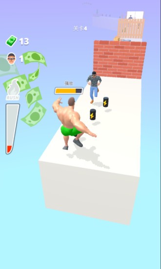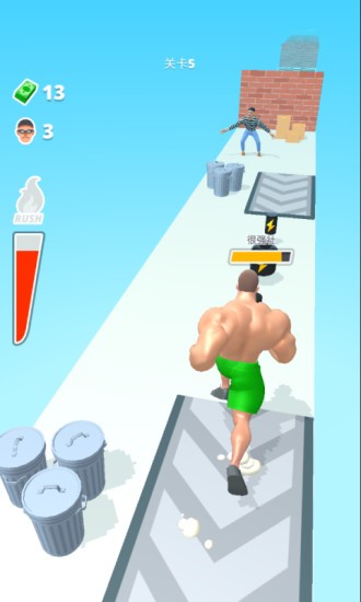一款有趣的跑酷休闲游戏,当你在充满挑战性的障碍关卡奔跑逃跑时,获得增益、变得强硬,并大显身手吧!击碎障碍、甩开流氓、获得所有你能获得的能量饮料和电池,准备好在惊险比腕力的头目战中猛击你的屏幕,以击败一箩筐越来越粗野的肌肉霸王。冲刺、旋转并击破木头、玻璃、砖块、金属等,以让你变得更筋肉!希望你没从练腿日逃跑,小虾米!