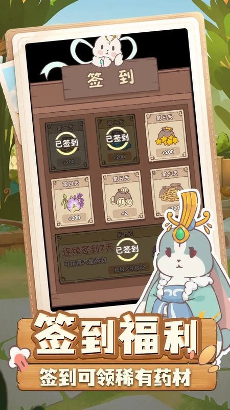 兔与药最新版是模拟休闲类的捣药游戏,绘制出唯美卡通可爱的风格画面,带来精彩有趣的玩法挑战,需要玩家经营玉兔药水铺,通过采集药材、制作药水、合成药水,炼制丹药,不断解锁更多药材资源,提升知名度,签到还有奖励药材领取哦!