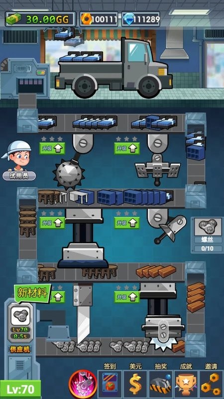 2、不断制造想要的产品,获得新的材料,升级你的工厂和机器,获得成就,可以邀请好友一起来玩。