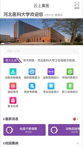 河北医科大学推出了一个叫做“云上冀医”的校园软件,这个平台主要是为了方便师生在学校里使用各种服务和功能。比如,你可以用学号直接登录,不用另外注册账号,挺方便的。这个app整合了学校的各种业务部门,提供了一站式的服务大厅,让信息共享更高效,减少了办事的麻烦。