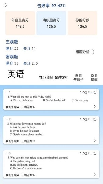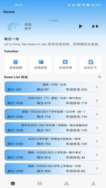 分数api手机版是提供学习成绩查询的应用平台,不仅提供丰富的知识内容和智能练习,可以随时学习巩固,查漏补缺,掌握薄弱知识要点,还可以查看成绩排名,了解成绩趋势,历史记录一目了然,方便大家针对性学习,操作简单易上手!