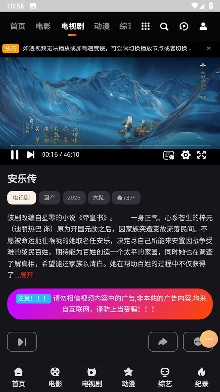 -- 多源:持续添加优质线路、视频源供您切换,画质清晰、播放流畅;