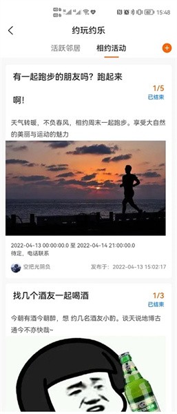 2.邻居动态,用以展现邻居精彩生活以及寻求帮助;