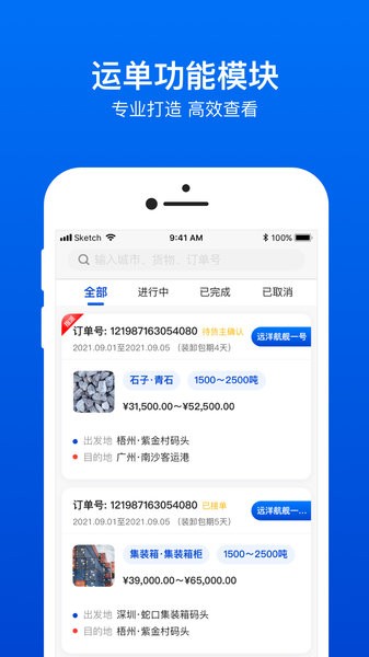 船旺船东app最新版拥有海量的运单,船东可以在这里查看最新的货运单信息,支持在线抢单,可以看到详细的出发地目的地以及报价信息,运单全程监控,能够查看货主的详细资料。