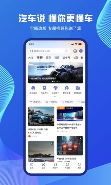 汽车说官方版为用户带来更多的汽车资讯,丰富的汽车信息都可以在软件之中查看,软件不仅可以查看各种汽车的信息,还可以帮助用户进行汽车的估价,在软件之中更加了解汽车。