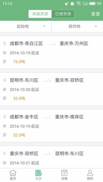 找货服务,直接根据起始地、目的地等条件进行找货筛选