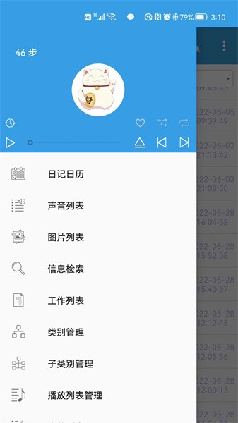 它分为日记、分类记事、备忘三个主要模块。充分挖掘手机这一空前先进的信息获得工具的潜力,利用拍照、录音、录像、文字、计步、定位等多媒体方式,不遗余力地、全面生动地去记录生活与学习,并把记录的数据系统地保存、便捷的使用,力求多年以后能“Yesterday Once More”!