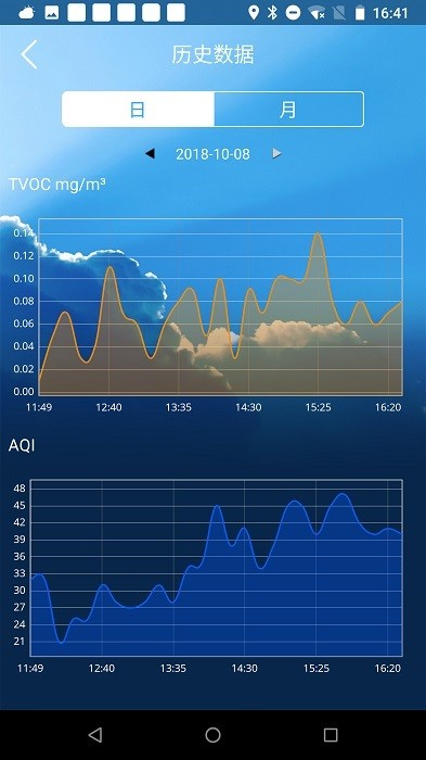 6、检测数据自动读取,在app端能够一览设备检测到的空气质量数据;