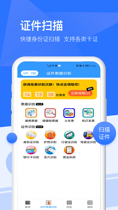 支持多种文件扫描,能完美的扫描身份证、银行卡、营业执照、护照、驾驶证、行驶证生成PDF,出门办事将会更加方便。