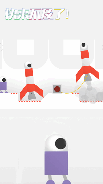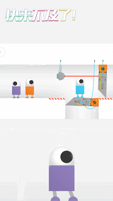 快来不及了手游是一款益智解谜游戏。在游戏中,来自未来世界的机器人被扔进了一间回收工厂,不知道是因为失误还是报废,玩家需要帮助小小机器人逃离这个地方。玩家需要为他搭建桥梁,建造骑车,甚至是搞出一个怪异的蜈蚣机器人将小机器人运送到安全位置,帮助小机器人摆脱悲催命运。