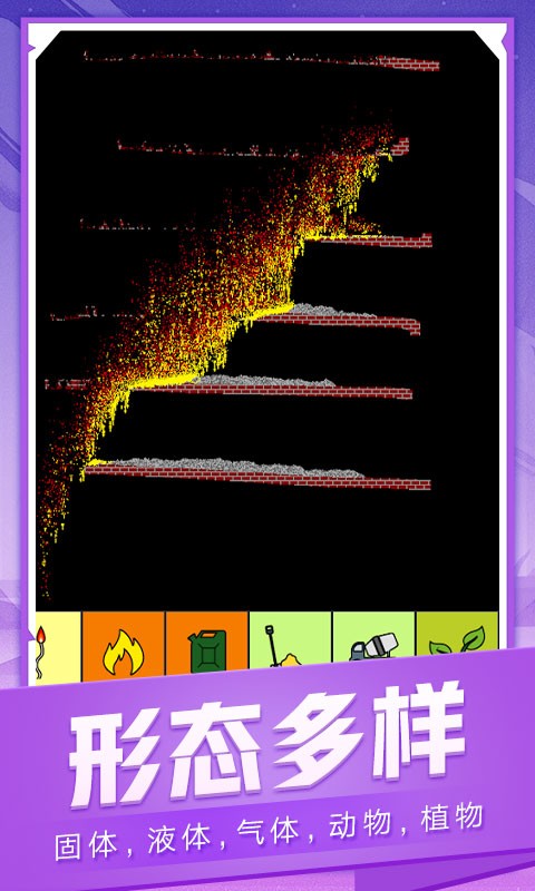 在沙盒游戏中体验粒子物理引擎,各种物质产生拟真化学反应。