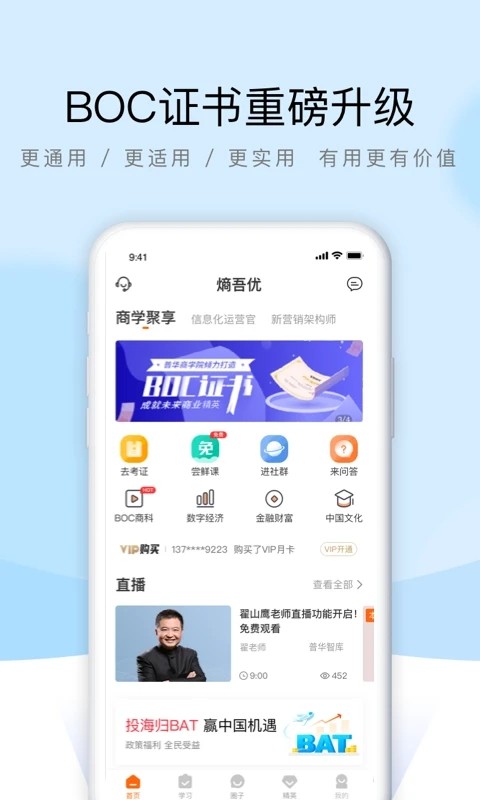 熵吾优app最新版是一个由普华集团打造的学习平台,专注于商业金融和职业技能提升。它提供丰富的在线课程,涵盖实操、财富秘籍等内容,适合职场人士学习考证和提升技能。用户可以试听免费课程,购买VIP会员享受更多特权,还能通过学习获得求职推荐。app功能齐全,包括直播课堂、课程评论、高级课程推荐等,方便用户互动交流和便捷学习。官方介绍中提到,它旨在为企业输送高知高能的人才,培养拥有实战经验和专业能力的优秀企业家。我觉得这个app特别适合想要提升职业技能或者转型发展的职场人士,尤其是那些想进入商业金融领域的朋友,可以在这里找到很多实用的学习资源和机会。如果你正在寻找一个靠谱的学习平台,不妨试试熵吾优app!
