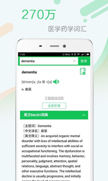 下载app提供的离线词库,手机不用联网也可以轻松的查询医学词汇;