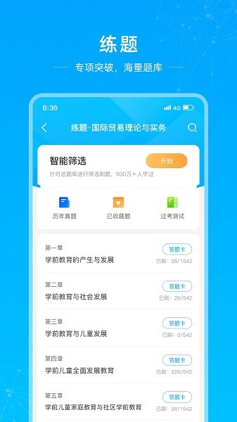 1、它将自学考试、升学考试、职业考证等应试教育场景,帮助用户个性化定制学习。