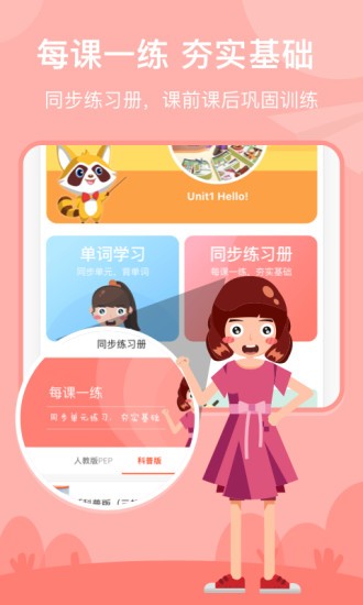 匹配教材单元进度、符合小学课本课文的场景,动画绘本方式的演绎学习,帮忙小学生同步课堂的学习进度。,知识巩固、同步培优,再也不怕孩子上课跟不上。