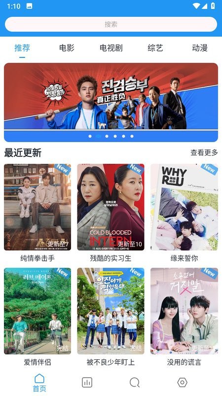 1、首页界面设计很简单明了,没有广告弹窗,营造了优质的看剧环境