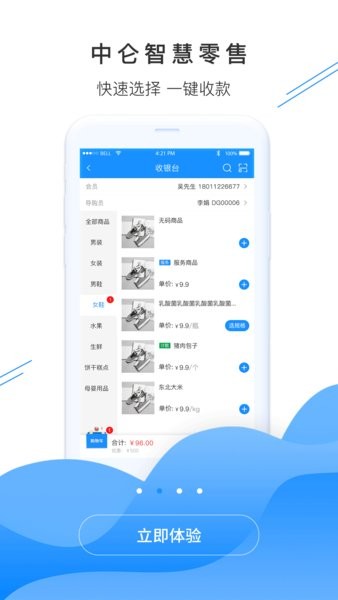 支持手机助手收银单据/收银机/自主收银机、销售、退货。