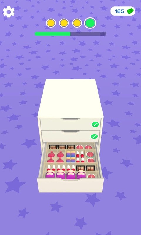 游戏有几个特色:首先,官方提供了指导视频,可以边学边玩;其次,完成任务会很有成就感,还能解锁更多内容;最后,整理好的化妆品看起来特别有条理,视觉效果也很清爽。我觉得这个设计挺贴心的,尤其是对于喜欢收纳的人来说,肯定会有满足感。