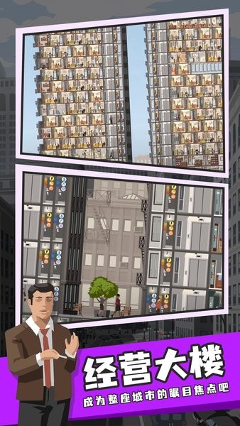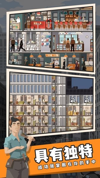 经营一座城市地标,打造属于你自己的摩天大楼,在摩天大楼中开设办公室,经营咖啡厅和餐厅,还有奢华的酒店公寓,你可以收租金,让你的摩天大楼良好的经营是你的目标。