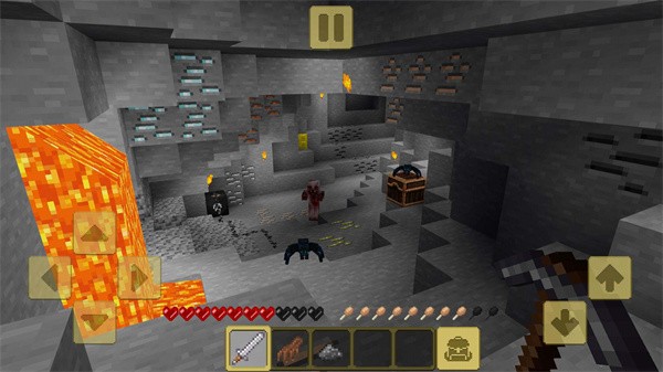 这是是一款经典的方块世界冒险游戏,游戏结合了方块建造、沙盒探索以及塔防元素。为了在游戏里生存和发展,玩家需要通过伐木、挖矿、捕猎等方式来获取资源,并通过合成系统打造武器和工具。
