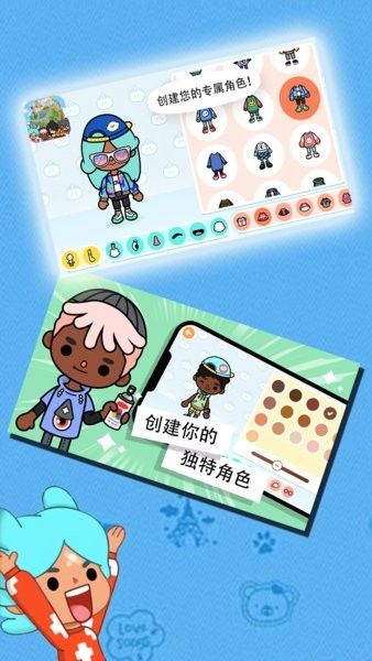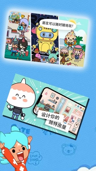 4、多达300多个角色供你选择,认识全世界的小伙伴,一起玩耍。