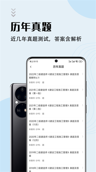 二级建造师题库app,一款专门为从事建筑行业的人们打造的在线学习软件,这里有大量的考试真题提供给大家学习练习,也凭借强大的网络技术打造了高度逼真的考试场景,让你可以提前适应,更有针对性的进行备考,超级的方便好用,有需要的朋友快来下载用起来吧~