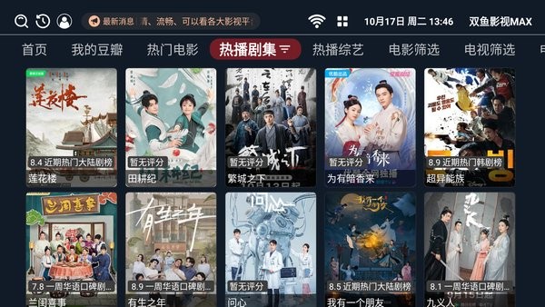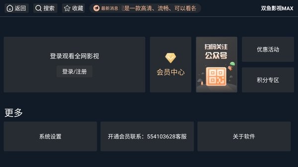 双鱼影视MAX app是提供电视版的影视播放软件,同步腾讯、优酷、爱奇艺等主流网站视频,热门电影、热播剧集、热播综艺等随你选择,自由筛选观看,内置丰富的播放源线路,灵活切换,高清播放,告别广告,央视、卫视一网打尽,实时记录,在线收藏,观看方便!