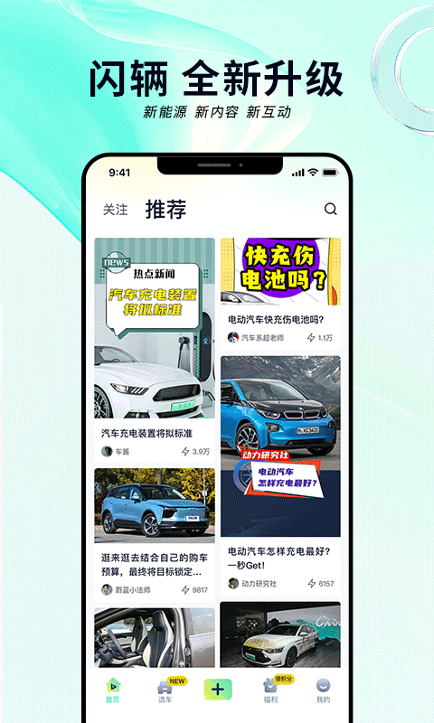闪辆是汽车之家推出的新能源车服务平台,用户能在这里轻松了解最新的车型信息、查看详细参数,还能找到实用的购车攻略,非常方便。App设计上做了很大改进,界面更清新年轻,功能也更个性化,比如一键剪同款视频,互动体验更好。平台内容丰富,不仅有各种有趣的汽车知识和视频,还有明星同款车、自驾攻略等精彩内容。用户不仅能学到买车技巧,还能参与各种福利活动,比如登录送好礼、打卡得壁纸、做任务抽奖等等。软件还优化了性能,使用起来更流畅。总的来说,闪辆对新能源车爱好者来说是个不错的选择,功能齐全又有趣,设计也挺有活力。