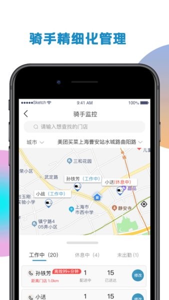 1.完善的订单模块可以实时进行查看骑手正在配送的各种订单。