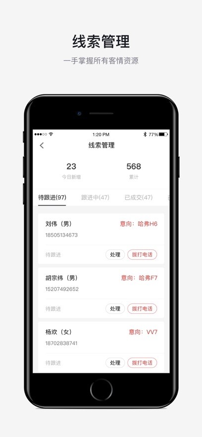 【线索管理】 搭配前端直播管理随时收集潜客信息。