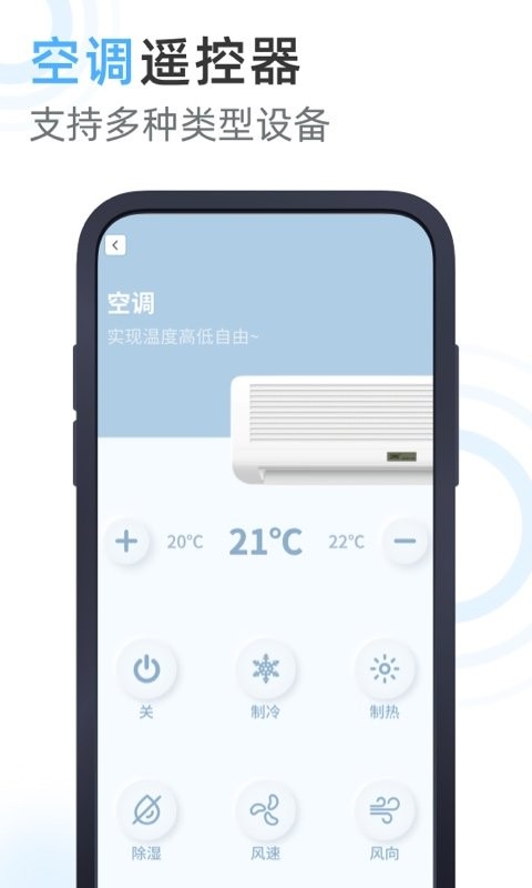 1、即使你的空调遥控器丢失也不用担心,手机遥控,省时省力。