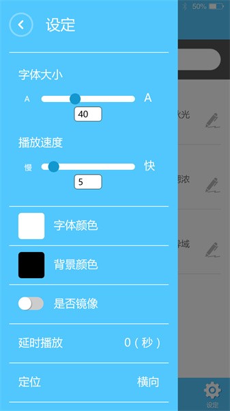 【提词设置】支持背景透明度,字体、播放速度、颜色等多方位自定义设置;