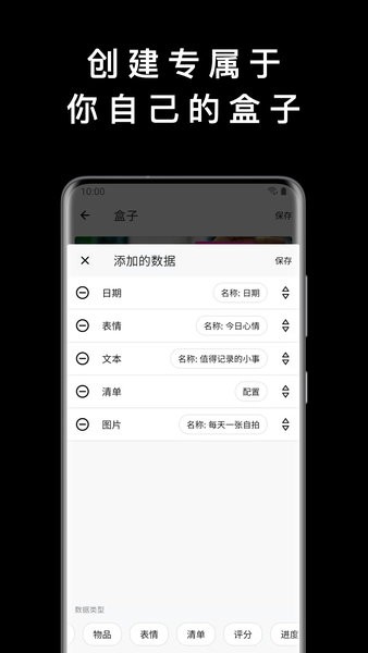 生活中,我们会用很多收纳盒来整理我们的物品,包括衣服、化妆品、玩具、数码设备、鞋子等。为了一些值得收藏的物品,我们还会用特定的东西来进行收藏。比如,我们会用相簿来整理照片,用储钱罐来存零钱,用书架来收藏图书。总之,各式各样的收纳盒帮助了我们进行更好地归纳和整理身边的物品。同时,我们为了更加帮助你更好地进行整理与归纳。我们为特定的box还提供了单独的功能。在减肥的box中你可以看到自己的数据统计表,在存钱罐的box中你可以看到自己的总数,在去过的城市box中,你可以看到它的地图,在衣服、化妆品的box中,你可以看到它们的保质期和截止日期时间。