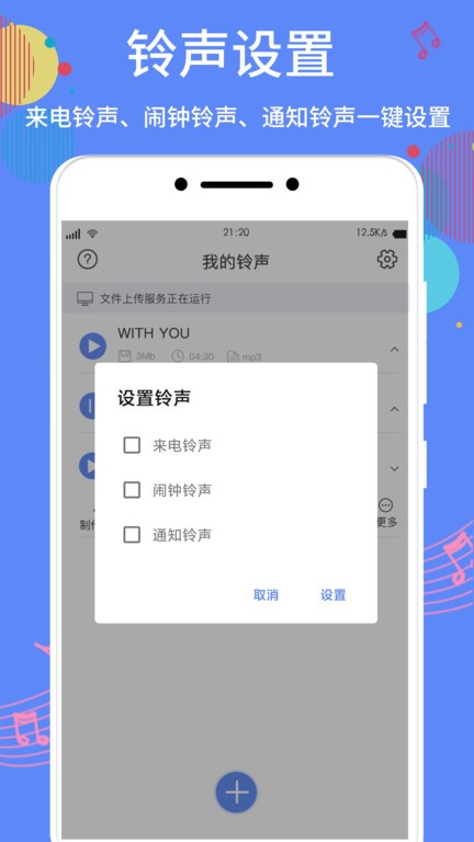自由铃声剪辑,短信铃声、手机铃声、闹钟铃声,音乐长短自定义,曲目随心变
