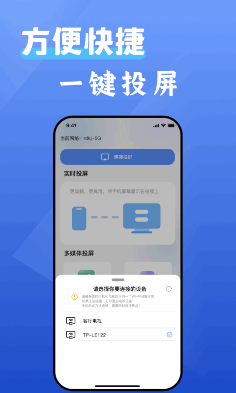 -- 轻松助你将手机、屏幕投射到大电视上,画质清晰,实时稳定。