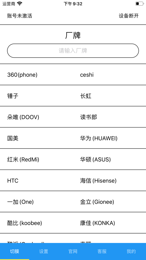 膜族科技app兼容的手机平板品牌和型号非常之广泛,安卓苹果均支持,用户在线选择好品牌和型号以后,就可以直接在手机上进行固件升级,对切膜速度、激光功率、xy轴偏移进行设置,能够进行红光预览,激光切割超方便。