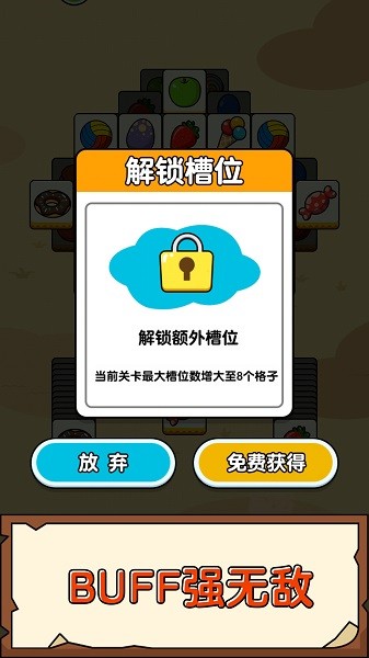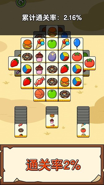 《开心消一消》是一款三消类游戏。游戏上方为道具区,下方是合成槽。玩家需要在上方的道具区找出三个一样的道具,点击到合成槽消除。将上方所有的道具完全消除就是游戏的胜利。下方合成槽要是位置占满就算失败。游戏中有洗牌,移出卡牌道具,玩家可以合理的使用道具将上方的卡牌完全消除。